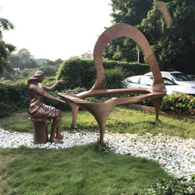 仿铜钢琴玻璃钢时尚女人弹奏雕塑