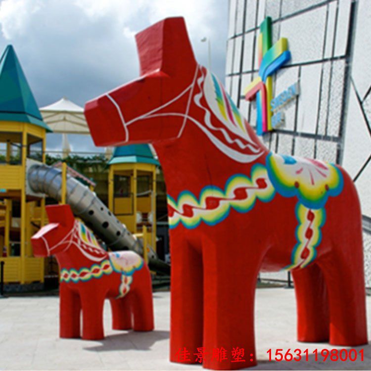 玻璃钢抽象几何木马雕塑卡通动物摆件
