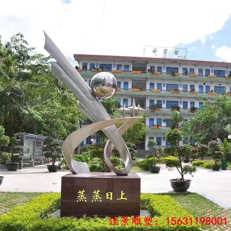 “蒸蒸日上”和“欣欣向荣”都可形容事业兴旺发达。但“欣欣向荣”多偏重在“繁荣”、“昌盛”;“蒸蒸日上”偏重在“向上”,表明事物发展、上升及提高。不锈钢蒸蒸日上雕塑利用喷漆的工艺制作而成,是城市环境景观的重要组成元素,起到点缀环境,画龙点睛的作用。
