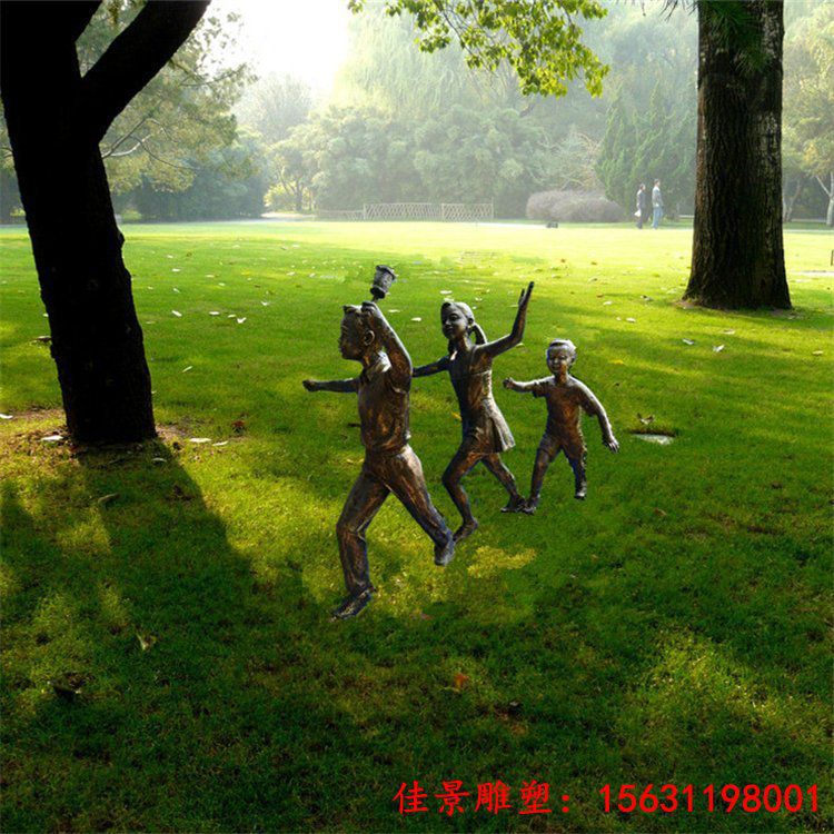 对于儿童雕塑的应用就非常的广泛了,根据雕塑所表达的主题思想来划分,最为常见的是应用于孩子们玩耍学习的场所,如校园、游乐场、公园等。如在校园内放置刻苦学习专研的孩童雕塑,以求激励孩子们好好学习天天向上的精神;在游乐场放置孩童嬉戏打闹的雕塑以求孩子们放松心情尽情娱乐;在公园园林中应用儿童知书达礼、忠孝节义的雕塑以求影响观光者的心声,起到潜移默化的正确引导作用……另外,也有部分儿童雕塑以童趣为主题,表达一种趣味、一种乐观的心态;部分以艺术表现为目的的以求艺术上的感染力的表达。