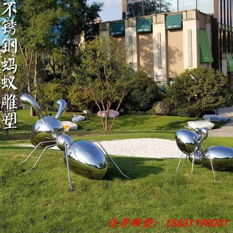 不锈钢镜面蚂蚁公园动物雕塑可用材质不仅局限于304,还可以是201等,所使用的工艺也不只是镜面,还可以是喷镀、烤漆、喷漆、拉丝等,尺寸和适用场所也非固定不变,具体请电话咨询。