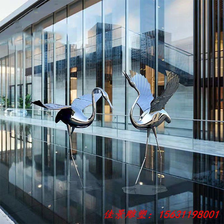 镜面不锈钢雕塑仙鹤是一款动物雕塑,仙鹤雕塑,在明朝和清朝时候,人们把丹顶鹤绣在了文官的朝服上,希望文官像丹顶鹤那样高洁清高,不贪图享乐,不贪图富贵,廉明清正,而且品德高尚;提起动物雕塑大家相信都不陌生,动物雕塑是以动物的特点为根据通过刻等技艺加工而成的雕塑,动物雕塑的题材非常宽泛,只要大家能想到的各种动物都可以制作成动物雕塑是采用304制成的不锈钢雕塑产品。304不锈钢拥有有着}良好的不锈耐腐蚀性能以及较好的抗晶间腐蚀性能使用镜面(材料的镜面特性,会由于对周遭环境的映照而减少雕塑的体积感与轮廓清晰度。因此,雕塑家在选用镜面材料进行创造时,多用抽象外形为主。而光线投射在镜面上头时,不会产生明显的灰的光影效果,致使该作品产生失重的轻盈感)工艺制作而成。