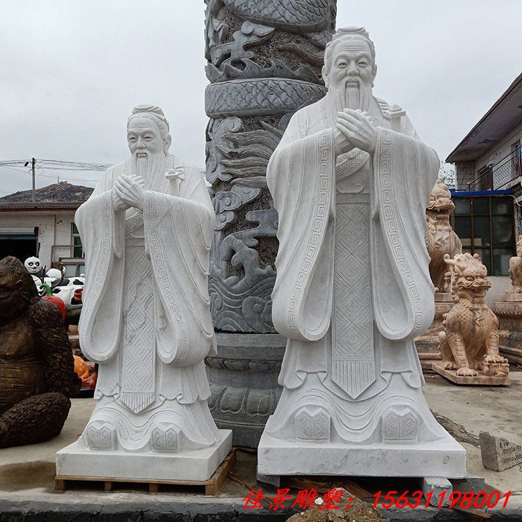 汉白玉孔子校园石雕是一款人物雕塑,名人雕塑,孔子雕塑,孔子雕塑为人师表般存在,成为现在全部的学习者的恩师,也可以让在学海遨游的学生们在孔子雕塑中凝听到来自千年前恩师的教导;名人雕塑是不论是在中国东方或者在西方都是特别好的,每个地方都有不同的名人雕塑;人物雕塑来源于工艺美术,大部分人物雕塑工艺品拥有很强的实用性。是采用汉白玉石雕制成的石雕产品。汉白玉是颜色洁白的大理岩,质地坚硬,是高等的建筑材料通过手工制作而成。手工雕刻加工方式是十分传统的,即使石雕制品类别许多,其分类方式非常多,但其制作工序大概一样。