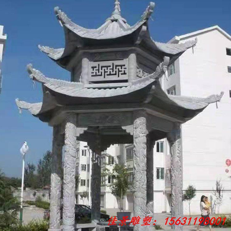 广场双层大理石凉亭是一款园林雕塑,凉亭雕塑,凉亭石雕作为公共设施雕塑弘扬着城市对城市景观的重视,展示着特色的城市文化;园林雕塑,是指一切布置在园林中的雕塑作品。在生活节奏越来越快,各种压力不断堆积的现代,园林艺术这种接近大自然、帮助人们放松心情的休闲场所的存在更是为人们所推崇是采用大理石制成的石雕产品。大理石材成分简单,容易加工,多数质地细腻,镜面效果良好,其不足之处是质地较花岗石差,被硬重物体碰撞时易受损伤,浅色的容易被污染通过机器制作而成。科技改变生活,这是现代社会中毋庸置疑的,机器雕刻可以大大地提高石雕的制作效率,而且能很准确地完成雕刻广场双层大理石凉亭适用于公园等地安置摆放。安置在公园中,公园雕塑具有象征意义,彰显社会气息。