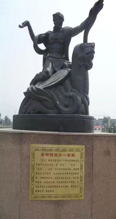 可见玄武是龟与蛇的联合体。是古代颛顼族的族徽。颛顼族与太昊,黄帝,炎帝均有血缘关系。黄帝天鼋氏,少昊玄枵(鸷)又作玄嚣。玄嚣为苍龙,枵为凤,即风姓。玄枵与玄嚣分别表示了少昊与太昊间的联系。嚣、鼋,上古皆鱼属。所以轩辕裔鲧又写作鲧,实际是鼋,三足鼋为能。颛顼亦鼋属,为大龟,龟亦鱼类,即有甲之鱼。所以《山海经》说颛顼死则复苏,化为鱼妇,或半人半鱼。是示其祖先为鱼类。然北狄之地本是天鼋氏大本营,南下征服东夷太昊、少昊、蚩尤后接受蚩尤的蛇图腾,画蚩尤像威行天下,于是使蚩尤余部归降,进而融合,遂有黄帝族内的蛇族,并使其师卫于轩辕丘帝都四野。黄帝蚩尤族合族徽即是玄武,颛顼之父族为韩流(豚韦),为黄帝裔,故颛顼继承黄帝王族族徽玄武,为帝位象征,便是"北宫玄武"。